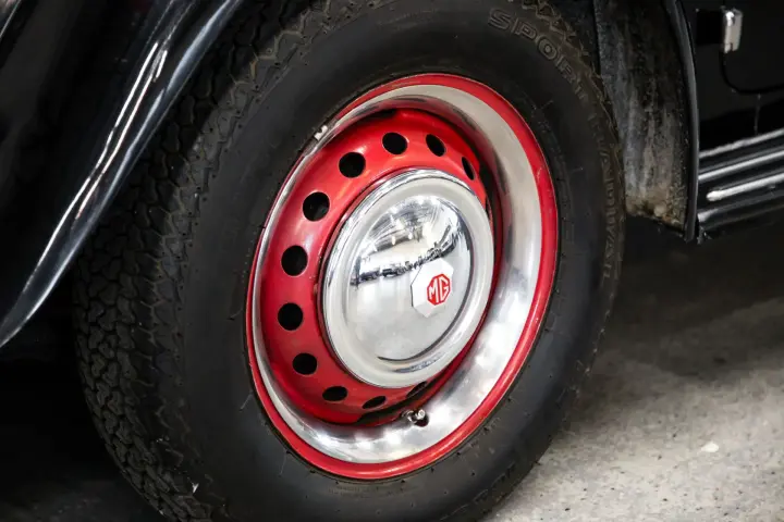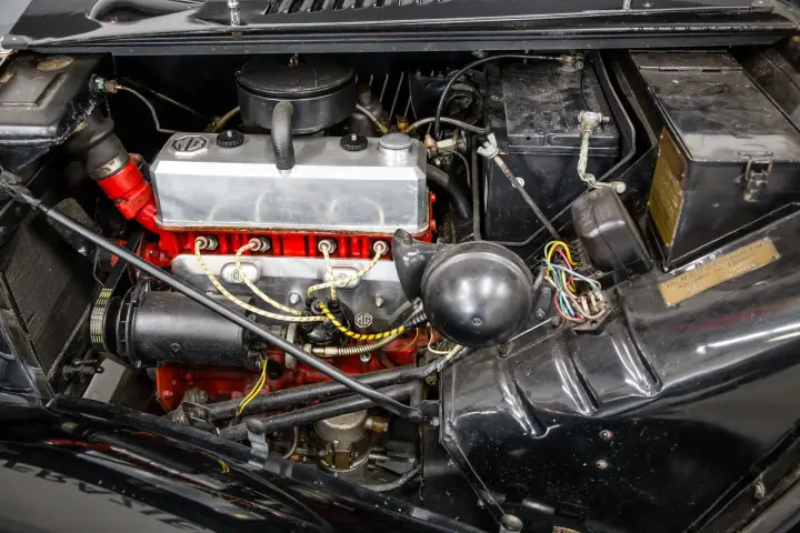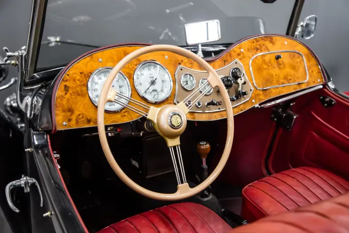 This lovely, unique MGTD is an older restored car that has been kept in climate controlled environment. The car is solid with no rust ,no wood rot, no indication of accident history. The wings are straight, the doors fit snugly, the chrome is nice as is the paint that looks in person as the pictures reflect. The leather is in good order, all gauges are clean and work as designed. Carpets door cards, soft top, weather gear are all in good condition.