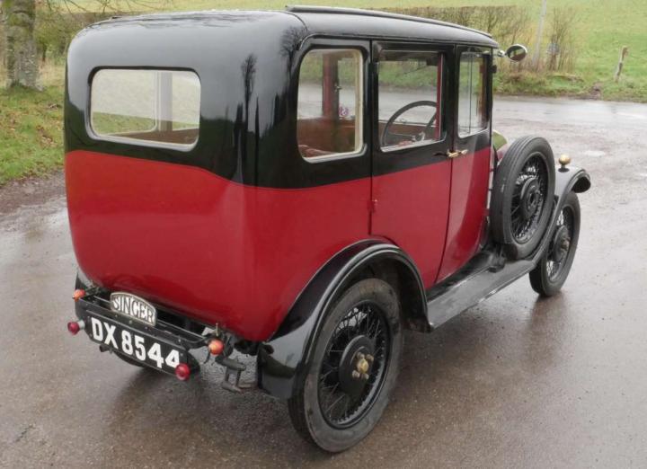 Surprisingly roomy with good accommodation for four, powered by an 848cc overhead cam engine, derivatives of which would appear in Singer cars for many years to come. Starts easily and runs sweetly, it drives and stops well with 3 speed gearbox and conventional pedal layout. Paintwork and chrome are very good, the bodywork is solid and straight, the interior has been re-furbished at some stage but has a nice patina, the sunroof slides easily and locks well. Current owner has had it for 25 years, has its original registration and comes with some history, old MOTs, original handbook and parts list, Book of the Singer Junior, other documents and magazine articles, plus a good box of spare. In many ways an up-market Austin 7 with more quality and space.