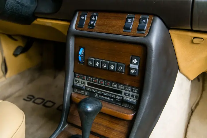 This lovely,, rare 300CD Turbo Diesel car is as nice in person as these 99 pictures reflect. The paint is outstanding with straight body panels and no indication of accident history rust history. The interior is as nice and crisp as shown with a crack free dash, crisp ,clean gauges that work as designed. The seats have nice original covering with full pleats .Headliner is good, all windows work properly. The Hvac system is in good order with cold A/C and warm heat. Tires are deep in tread.