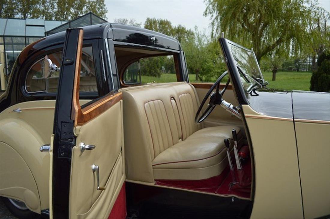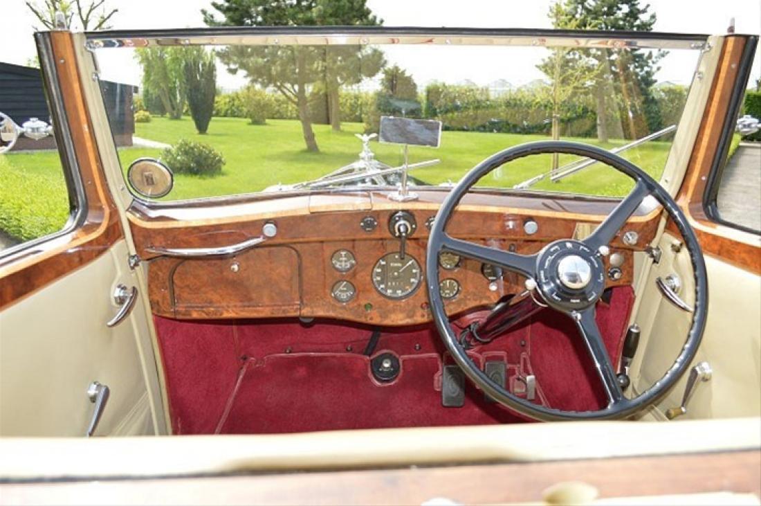 Rolls-Royce 25/30 HP #GMP73 is a very elegant Sedanca de Ville. It is the only known remaining example of the Sedanca de Ville 25/30HPs designed by John Blatchley for Gurney Nutting. It is a multi award winning car, such as the Elegance prize at the 2010 RREC National Rally. It sports many striking features. It has highly unusual pontoon wings, a trademark ellipsoid peak over the moulded spare wheel cover, extravagently decorated rear wheel spats, a canted B-post, desirable Lucas R100 headlamps, ‘Owl-Eye’ tail lamps, an electric division and ACE wheel discs.