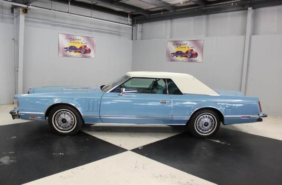 The Blue leather interior is on a power split seat, power windows, power vent windows, power door locks, tilt column, Wood grain dash, blue dash pad, blue carpet and floor mats, blue head liner and sun visors with mirrors that are lighted. Cruise control, delay lights, factory AM/FM/8 Track/CB radio. Power trunk opener in glove box. Looks new inside.