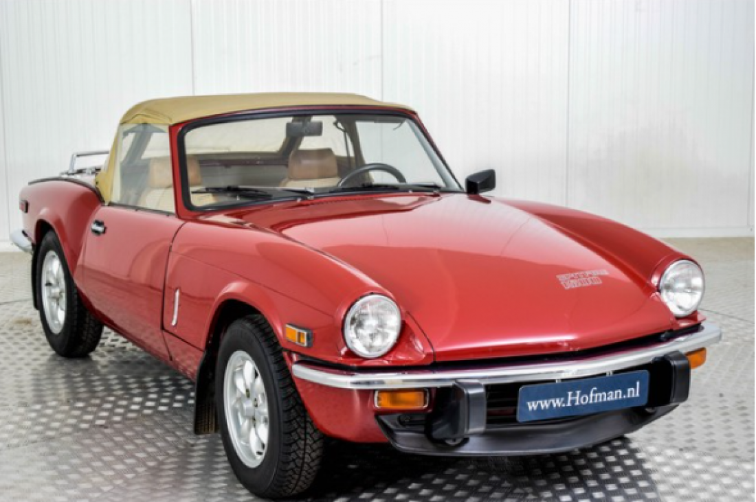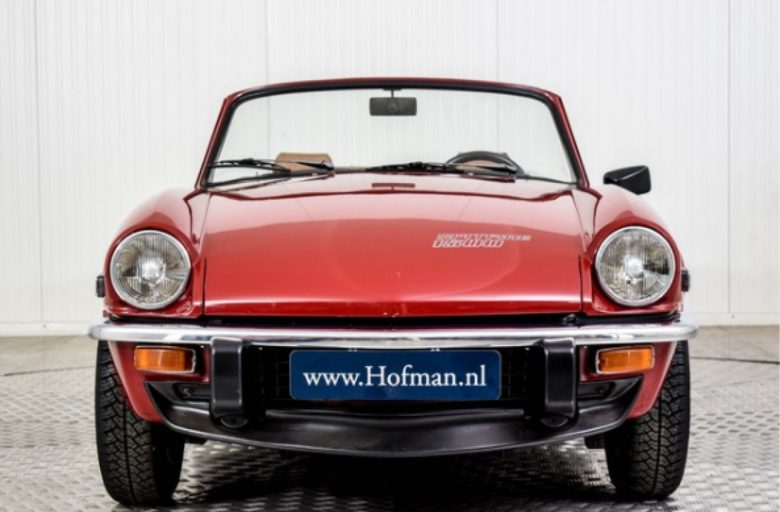 Schitterende Triumph Spitfire met potente 1500 cc motor! Dit exemplaar werd nieuw geleverd in de Amerikaanse staat Californië en kreeg in 1997 voor het eerst een registratie in Nederland. De strekke carrosserie is uitgevoerd in chique donker rood wat prachtig matcht met het lichtbruine interieur. Als begerenswaardige extra is deze Triumph uitgevoerd met een overdrive versnellingsbak die zorgt voor een lager toerental bij hogere snelheden. Een keurig en vooral zeer goed exemplaar! Bedrijfsinformatie: Prijswijzigingen, druk- en zetfouten voorbehouden. Altijd ruim 500 auto's op voorraad, check de actuele voorraad via www.hofman.nl. Volg ons ook op facebook.com/HofmanLeek. Bel ons voor de mogelijkheden voor inkoop, verkoop, consignatieverkoop en stalling. * Veilig online kopen @ hofman.nl * Levering aan huis mogelijk * Inruil mogelijk. Al onze autos staan met een zeer uitgebreide fotoreportage (60-100 fotos) online op www.hofman.nl