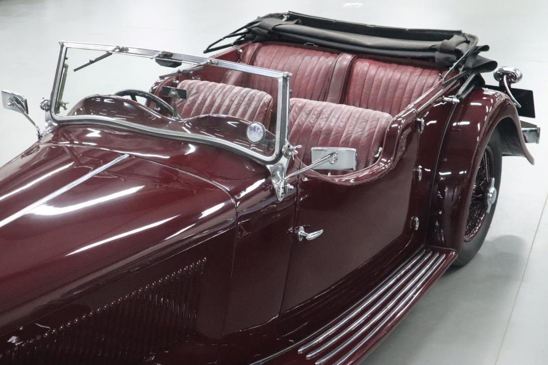 The SS was registered in the name of Miss C. Eyre by dealer Henlys in London on July 1, 1936, according to the Jaguar Heritage Archive. She chose the color cream with green leather interior, which was later changed during the restoration to maroon with a dark red interior. Seven years ago, the car was extensively overhauled by the SS specialist David Davenport from England. No expense has been spared, and that is still clearly visible today. It is a real joy to discover the overall quality and originality down to the smallest detail.