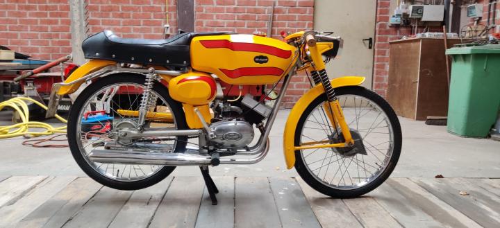 Uniek mooie gerestaureerde Malaguti Grand Sport van 1969. Loopt en rijdt perfect en komt met NL kenteken. Zeer netjes gerestaureerd. Prachtig origineel doorlopend buddyseat. PRACHTIG! Echt Italiaans kunstwerk, dubbele uitlaat, echt super !! Grootste keus in ECHTE klassiekers met meer dan 450 stuks in de Stolze Collectie: van project tot perfect !