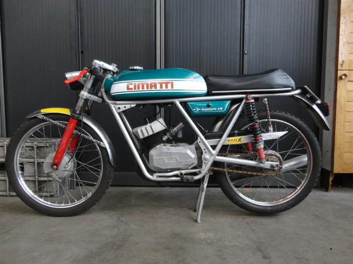 Een super mooie en super snelle 1971 Cimatti Sagittario 6M 50CC Italiaanse brommer. 6M betekent dat de versnellingsbak 6 versnellingen heeft. Zeer zeldzaam en origineel! Komt met Nederlandse registratie. Grootste keus in ECHTE klassiekers met meer dan 450 stuks in "de Stolze Collectie " ! "van project tot perfect! "