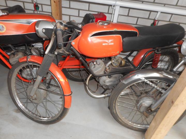 Een mooie Moto guzzi, oranje en uit de jaren 60. De lak is in goede staat. Met NL kenteken. Grote keus in motor- en bromfietsen in de Stolze Collectie!